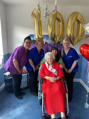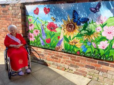 The Mural contains amongst other things two balloons with "100" woven into the string and the residents initials .A party was attended by lots of family and friends and a great day was had by all .The mural also contained a butterfly with a residents initials who donated some money for the residents to enjoy